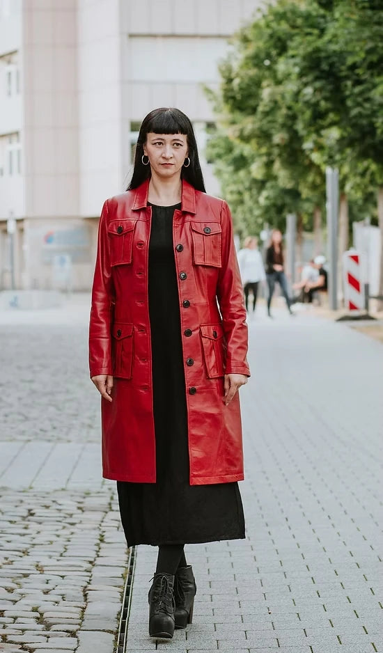 Make an unforgettable entrance with our captivating collection of women's leather coats,...