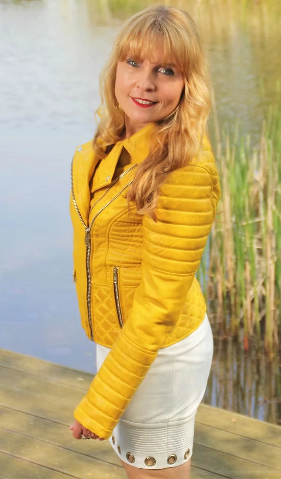 This stunning Biker Leather jacket exclusively handmade artistically waxed exterior. The featured of the jacket is biker style collar, attractive thick quality two zippered front, quilted Front, Back Sleeve and side panels. Formfitting with high quality leather and craftsmanship.